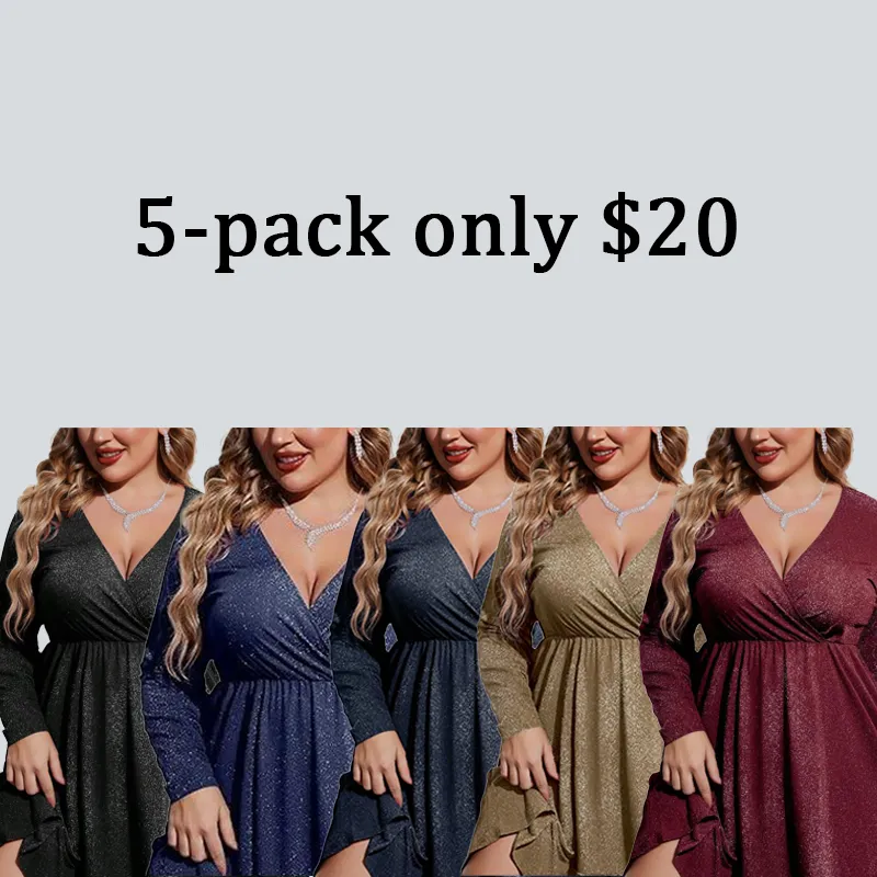 Tynelle Women's Glitter V-Neck Long Sleeve Dresses